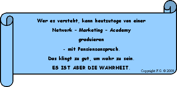 und Unabhängigkeit von Network – Marketing kaum vorstellen.